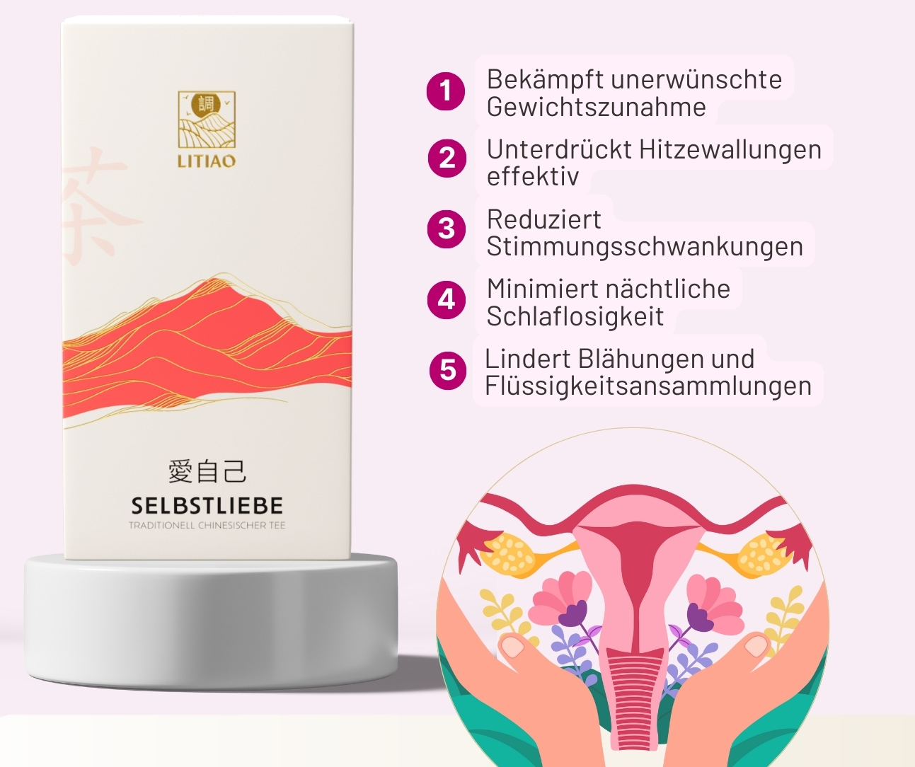 SELBSTLIEBE ist ein wohltuender Kräutertee auf Basis der Traditionellen Chinesischen Medizin – eine natürliche Alternative zu synthetischen Kapseln oder Hormonpräparaten.
