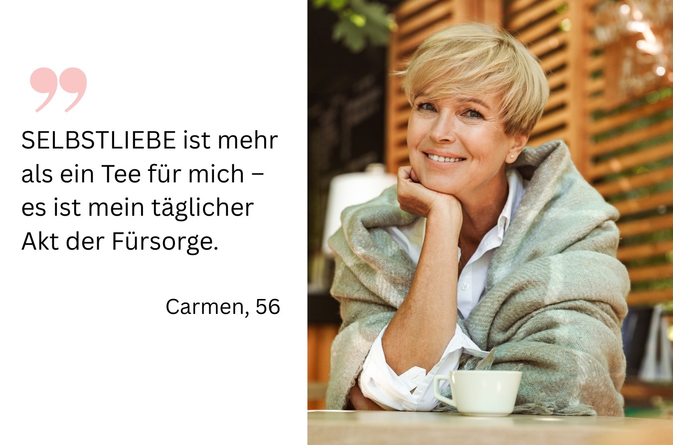 "Seit ich SELBSTLIEBE trinke, sind meine Nachtschweißschübe fast weg. Und ich schlafe endlich wieder gut."